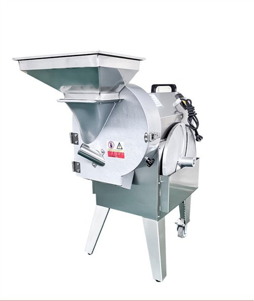 The vegetable dicing machine is mainly composed of a base, a housing, a dial, a vertical knife, a screwdriver body, a transverse cutter body, a transmission system and an electrical control system. The machine base, housing, hopper and main components are made of aluminum-magnesium alloy and stainless steel to ensure long-term work without rust and toxicity.